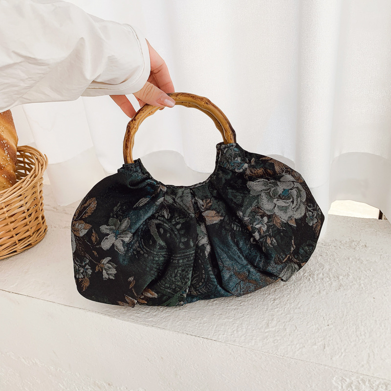 女包包国风复古提花汉服中式布艺压褶设计褶皱包珍珠旗袍包手提包