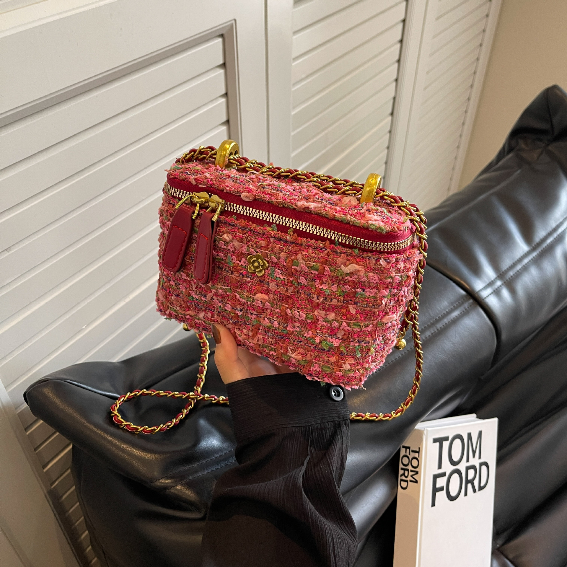 跨境小香风毛呢链条包包女2025新款秋冬小众设计盒子包百搭斜挎包