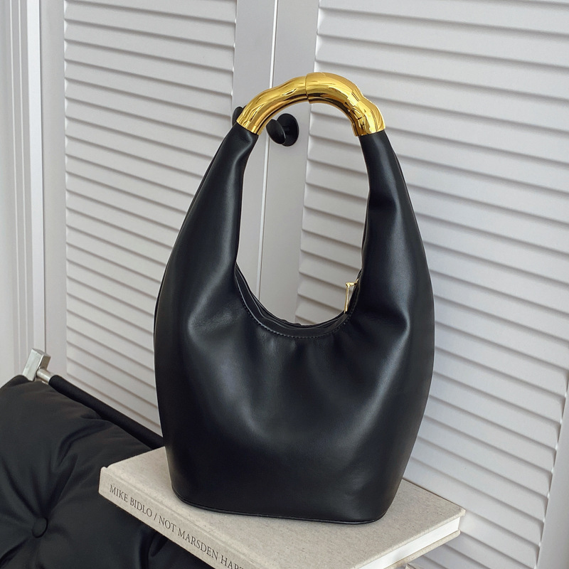 法式不规则金属手柄手拎包水桶包晚宴包纯色极简风月牙包手提女包