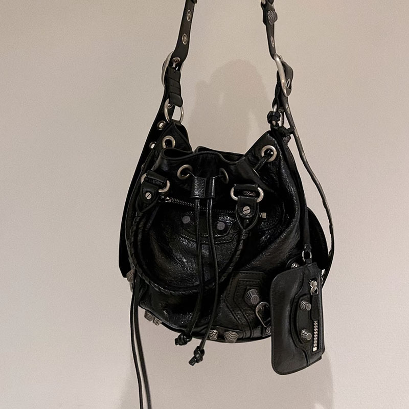 欧米のファッション的な脇下バッグ2025新型カジュアル個性潮クールな点リベットバケツバッグ