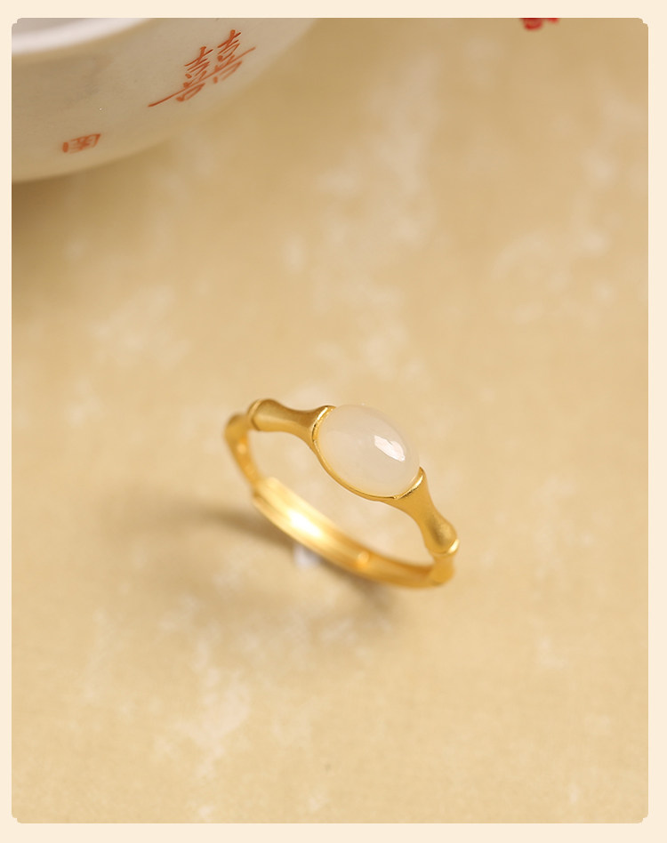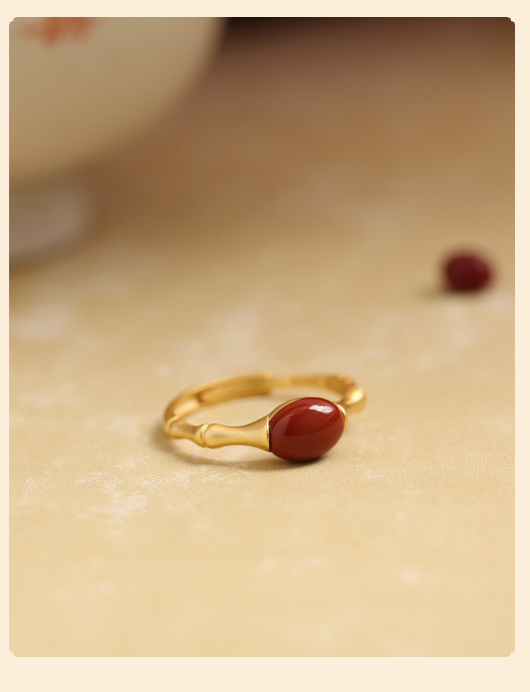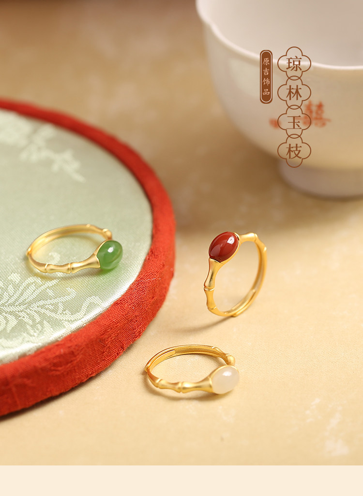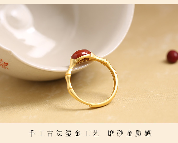 和田玉の指輪の女性の純銀の南の赤い瑪瑙の復古の設計の大衆の高級感の古風な竹節の玉の指輪