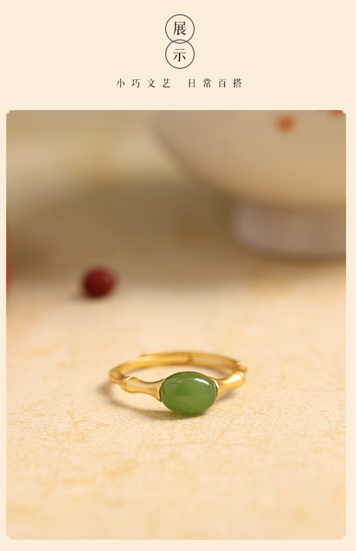 ニャンコ銀s25銀飾り金メッキ和田碧玉指輪ファッション清新開口女性式ブレスレット新商品