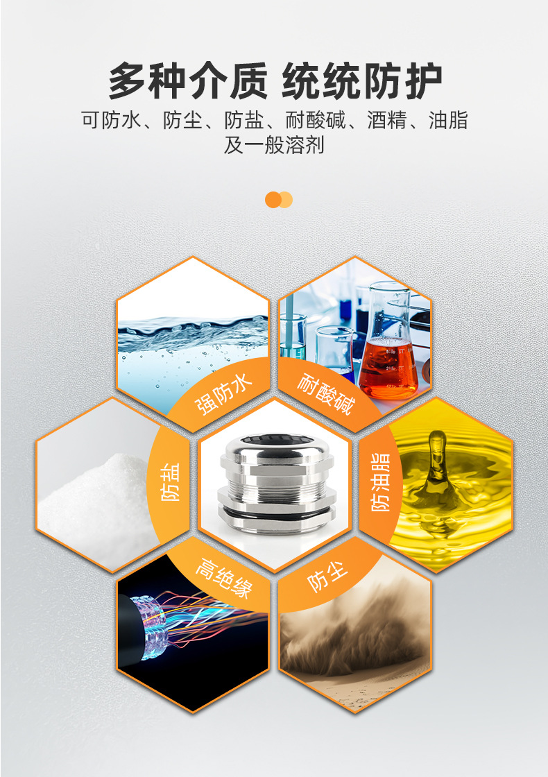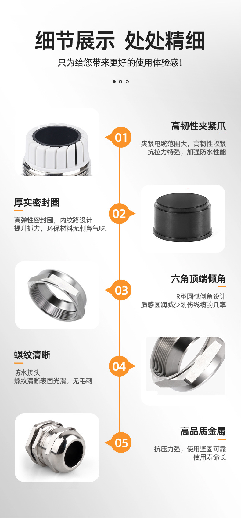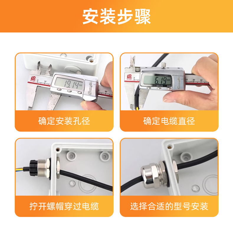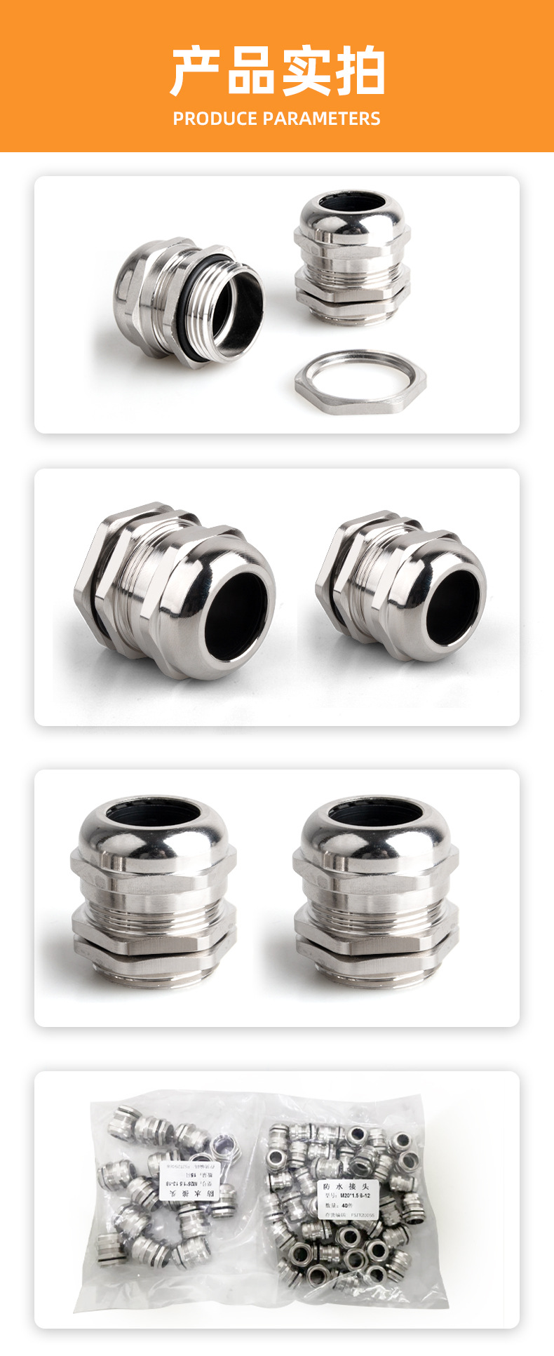 M6*1 (ラインスルーレンジ2~4mm),M8*1.25(通し線範囲2~4mm),M8*1.25(通し線範囲2~5mm),M10*1 (スレッド範囲 3-6.5mm),M12*1.5(スレッド範囲3-6.5mm),M12*1.5 (スレッド範囲 4-8mm),M14*1.5 (スレッド範囲 4-8mm),M16*1.5(通しネジ範囲4~8mm),M16*1.5 (ラインスルーレンジ5-10mm),M18*1.5(通し線範囲5~10mm),M20*1.5(ワイヤー通過範囲6~12mm),M20*1.5 (ラインスルーレンジ10-14mm),M22*1.5(ワイヤー通過範囲10~14mm),M24*1.5(ワイヤー通過範囲10~14mm),M25*1.5 (ライン範囲 10 ~ 14),M25*1.5 (ワイヤー範囲 12-16mm),M25*1.5(ワイヤー通過範囲13~18mm),M27*1.5(ワイヤー通過範囲13~18mm),M28*1.5(通しネジ範囲13~18mm),M30*1.5(配線範囲15-22mm),M32*1.5(ワイヤー通過範囲15~22mm),M33*1.5(ワイヤー通過範囲15~22mm),M36*1.5(ワイヤー通過範囲18-25mm),M37*1.5(ワイヤー通過範囲18~25mm),M40*1.5 (ワイヤー範囲 22-30mm) 接続,M42*1.5(ワイヤー通過範囲22~30mm),M47*1.5(ワイヤー通過範囲25~33mm),M48*1.5(ワイヤー通過範囲25~33mm),M50*1.5(ワイヤー通過範囲32~38mm),M54*1.5(スレッド範囲32~38mm),M60*1.5(スレッド範囲37-44mm),M63*1.5(ワイヤー通過範囲37~44mm),M64*1.5(ワイヤー通過範囲37~44mm),M70*1.5(スレッド範囲42-52mm),M72*1.5(スレッド範囲42~52mm),M75*1.5(ワイヤー通過範囲42~52mm),M80*1.5(スレッド範囲55-62mm),M88*1.5(ワイヤー範囲65-70mm),M90*1.5(ワイヤー通過範囲65~70mm),M100*1.5(スレッド範囲78-84mm),PG7(スルーワイヤー範囲3~6.5mm),PG9 (パススルーライン範囲 4-8mm),PG11(パススルーライン範囲5~10mm),PG13.5(スルーワイヤー範囲6~12mm),PG16(ライン通過範囲10~14mm),PG19(ケーブル通過範囲10~14mm),PG21(ライン通過範囲13~18mm),PG25(スルーワイヤー範囲16~21mm),PG29 (パススルーライン範囲 18-25mm),PG36(ライン通過範囲22~30mm),PG42 (パススルーライン範囲 32-38mm),PG48 (ライン範囲 37-44mm),PG63 (パススルーライン範囲 42-52mm)