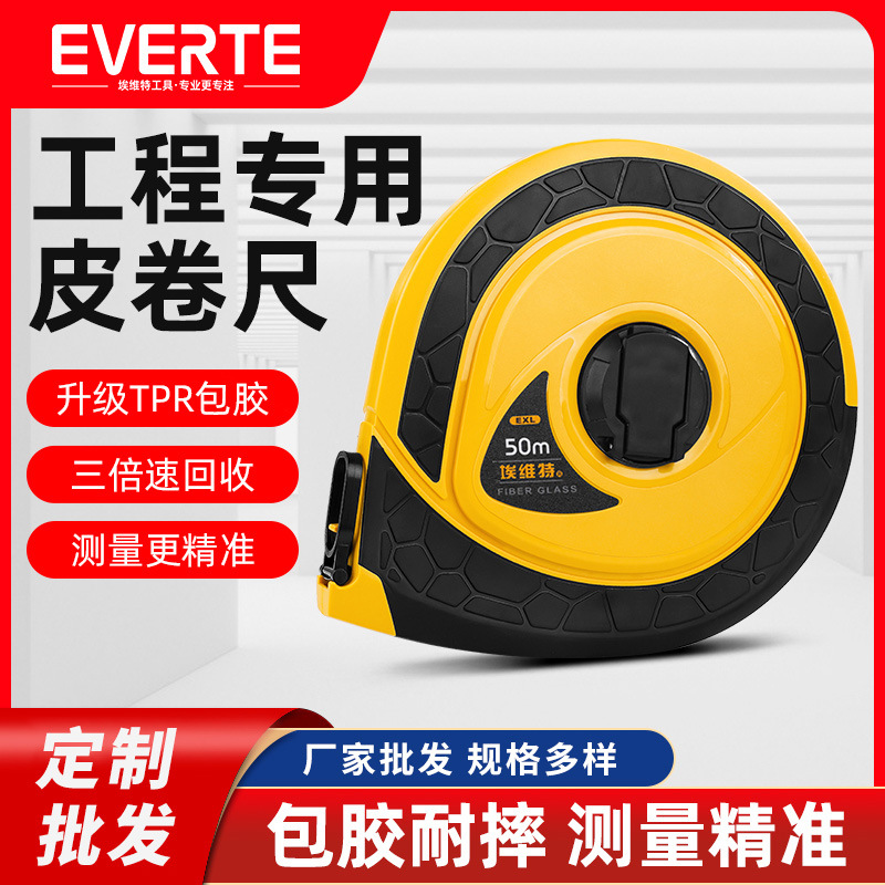 源工場は大量に皮の巻尺の繊維の巻尺の50メートルの箱の巻尺の測定の工具の定規の工事の専用を卸売りします。