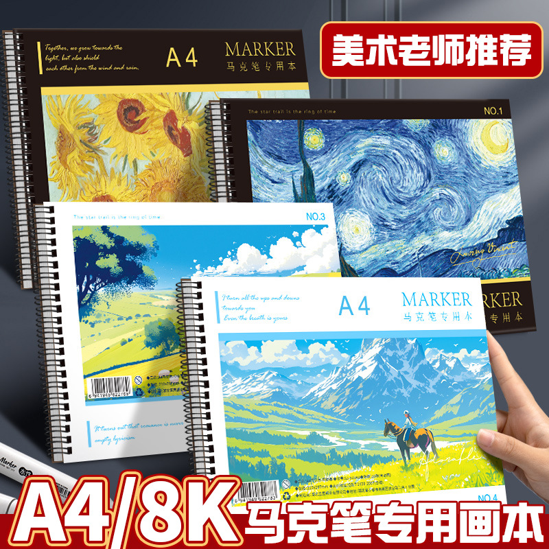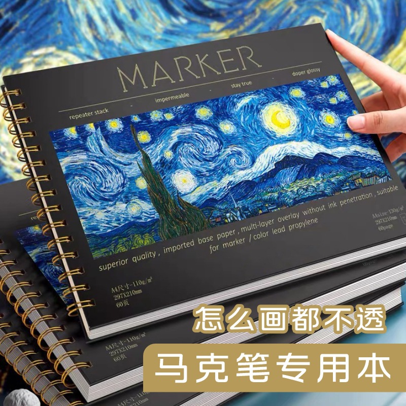 马克本A4马克笔专用绘画本专业手绘学生涂色图画本空白涂鸦美术本