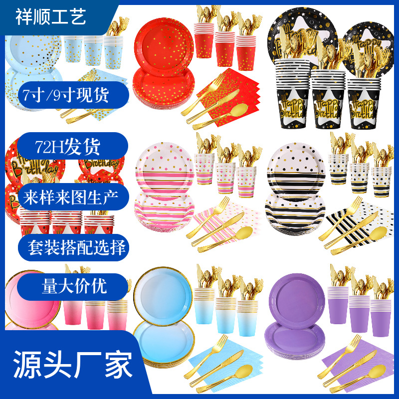 使い捨て紙皿紙コップ卸売り誕生日おめでとうパーティーケーキピクニックパーティー卸売り使い捨て食器セット