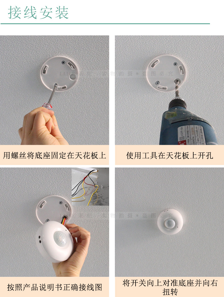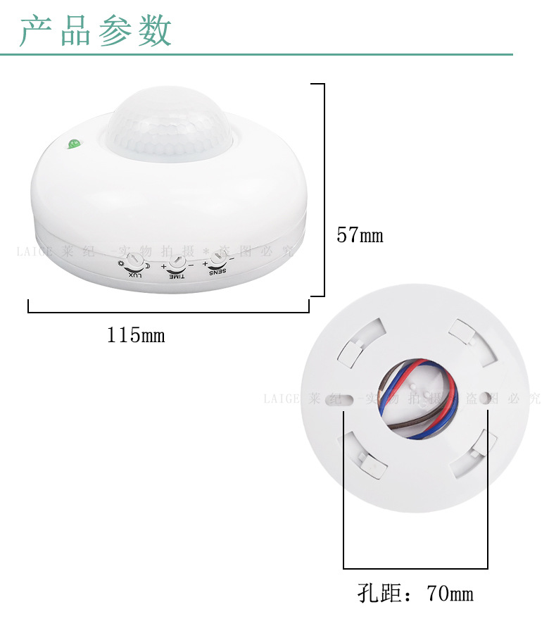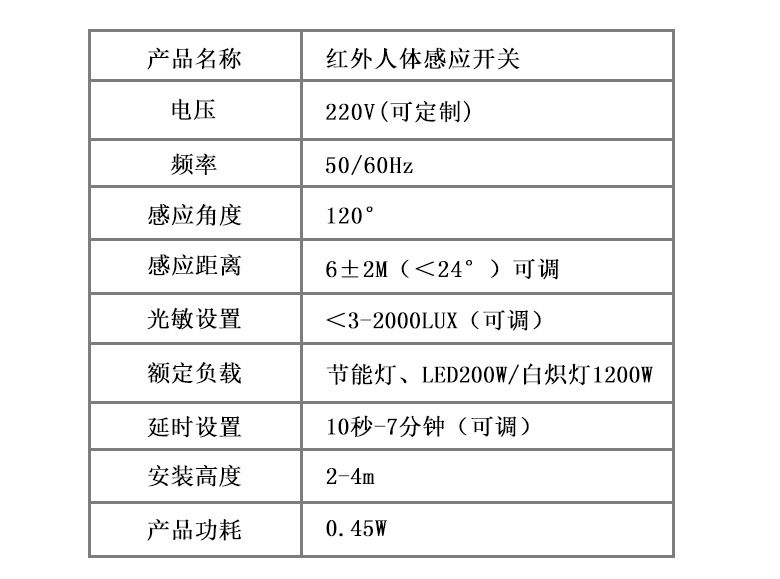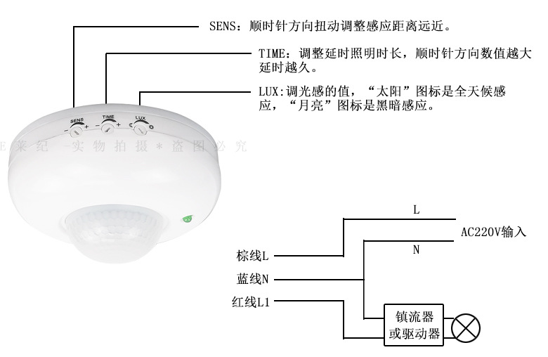 スマート吸上明装赤外線人体誘導スイッチledランプ遅延と光感度調整端子付き