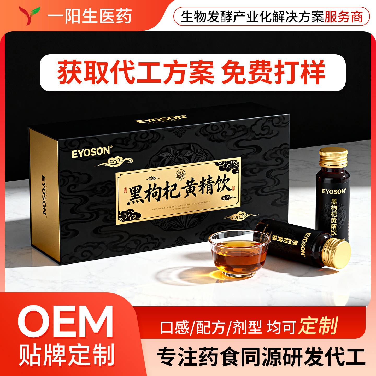 黒クコとオウレン飲料OEM加工、カスタマイズされたオウレンと高麗人参ハーブ液体OEM工場