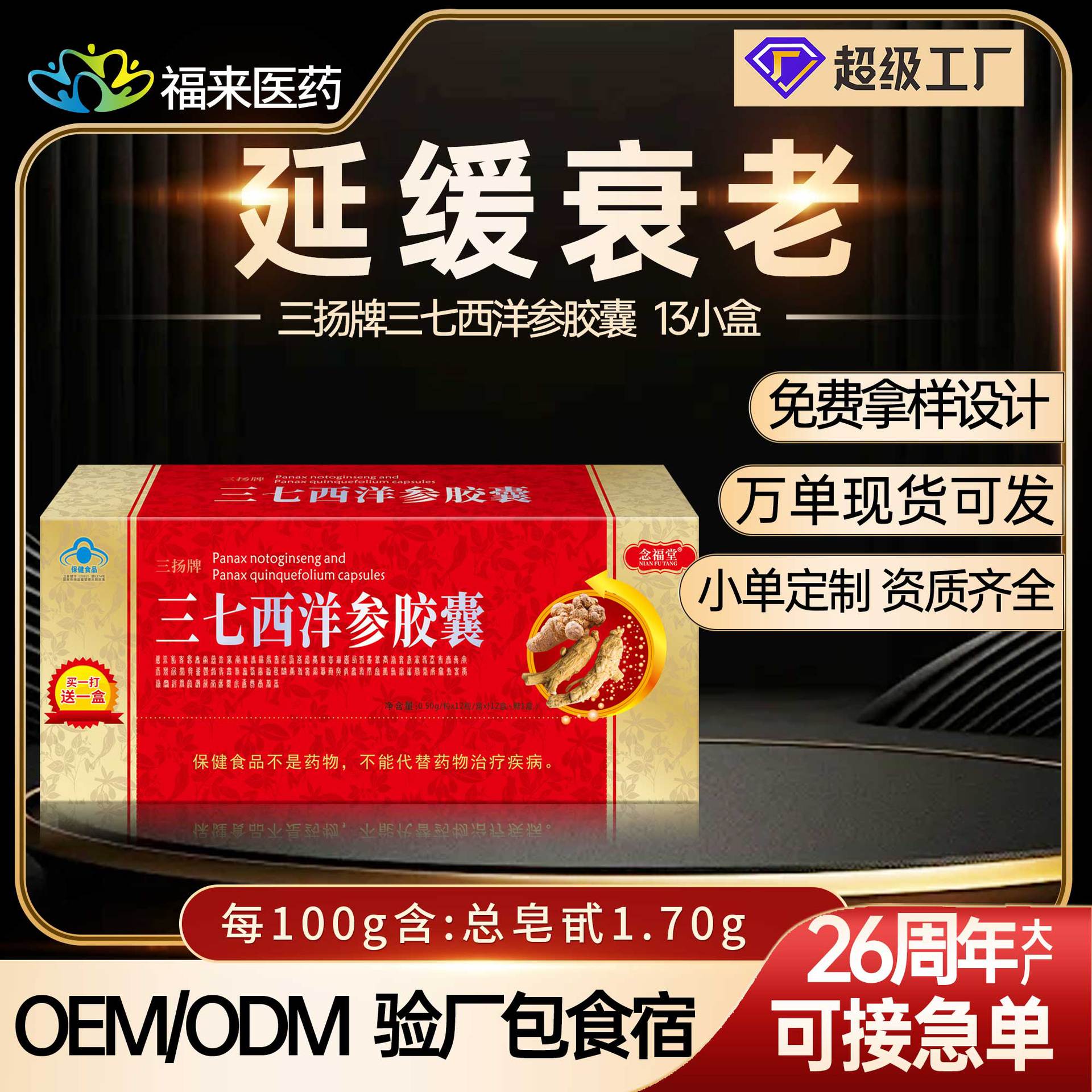 在庫あり】老化を遅らせるブルーハット三七西洋参カプセル 大人・中高年向け栄養補助食品卸売