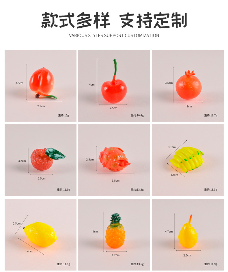 ミニミニミニチュア果物食品モデルみかんイチゴ火龍果バナナレイシレモン食游置物