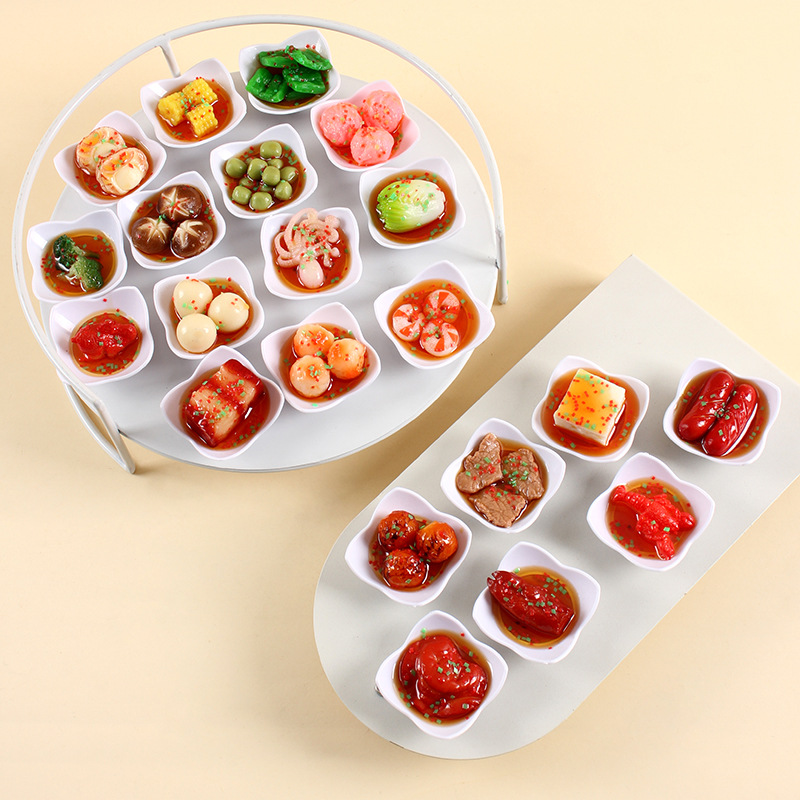 四角の四角の皿のシミュレーションの野菜の掛け物の趣味の小さいタイプの中華料理の皿のキーホルダーは装飾のシミュレーションの食品の模型を掛けます。