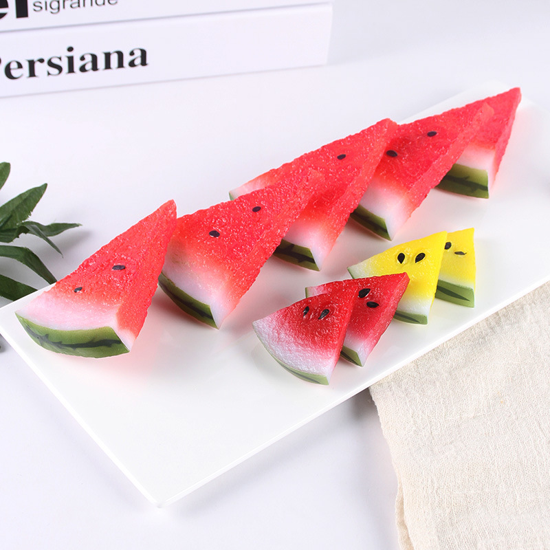 Pvcはスイカの切れの偽の果物のスイカのキーホルダーのペンダントの装飾の模型をシミュレーションして撮影の置物の道具を撮影します。