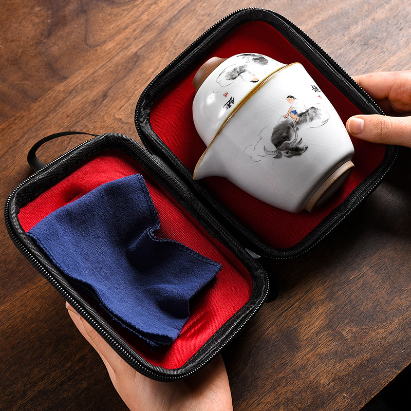 携帯汝窯旅行茶器陶磁器セット一本二杯快客杯ティーポットビジネスプレゼント