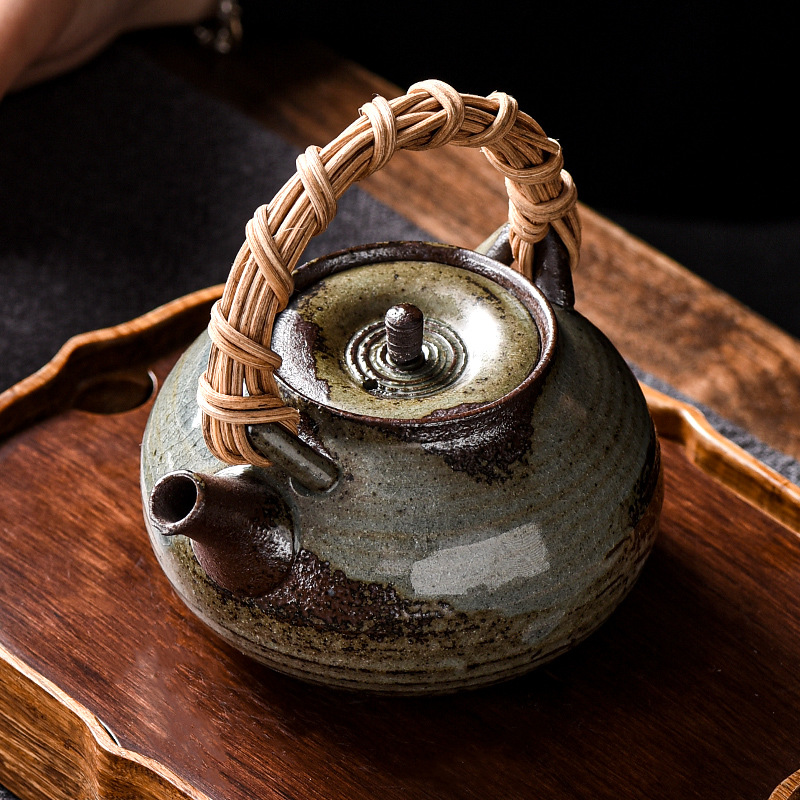柴焼藤編提梁壺レトロ泡急須家庭用大工日本式粗陶煮急須単壺泡茶器