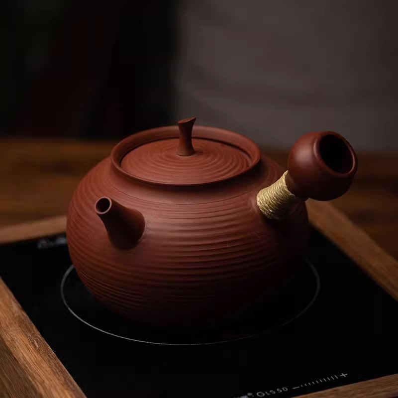 潮州手作煮茶壶功夫茶壶砂铫壶侧把粗陶原矿朱泥非遗古法响水壶