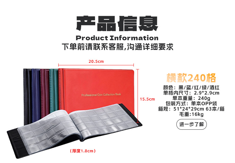 【 款 式 】 内页共10页,每页24个口袋 共计:240个口袋