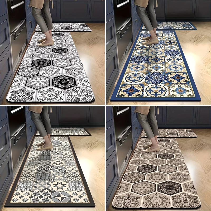 クロスボーダーモダンでシンプルな珪藻泥キッチンフロアマット、滑り止め、防水、耐油、防汚フロアマット、家庭用お手入れが簡単なカーペット