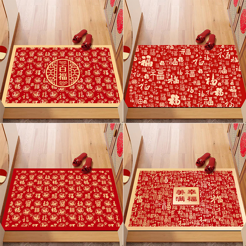 新年の家庭用百福図のマット2025玄関の水晶の絨毯の赤いドアのマットの新しい中国式の贈り物は福の絨毯の足のマットを踏みます。
