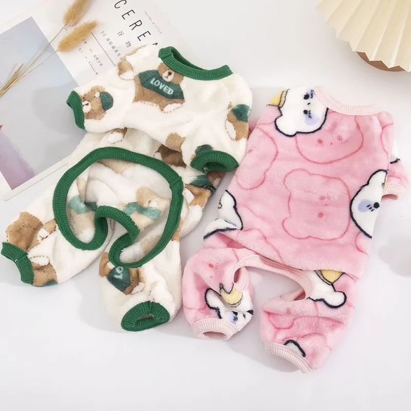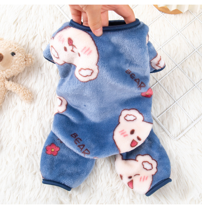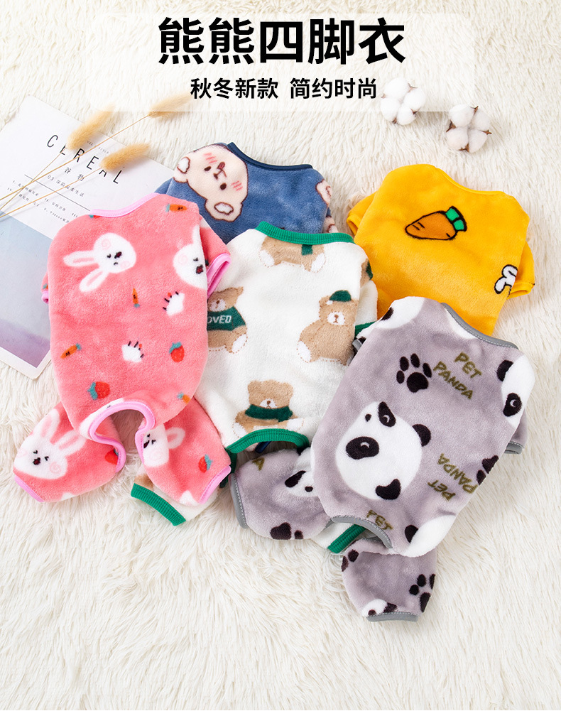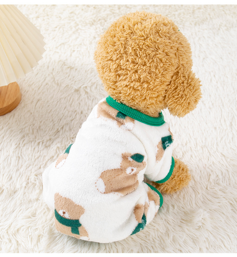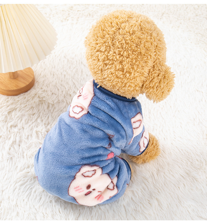 ペット犬服秋冬ベルベット厚手フード付きベアー四足服テディ比熊小型犬ペット服