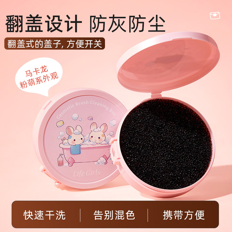 LifeGirls メイクブラシ クリーニングボックス すぐに洗って使用できるレイジー クリーニング スポンジ ブラシ フリップトップ アンチレイヤー クイック ドライ クリーニング