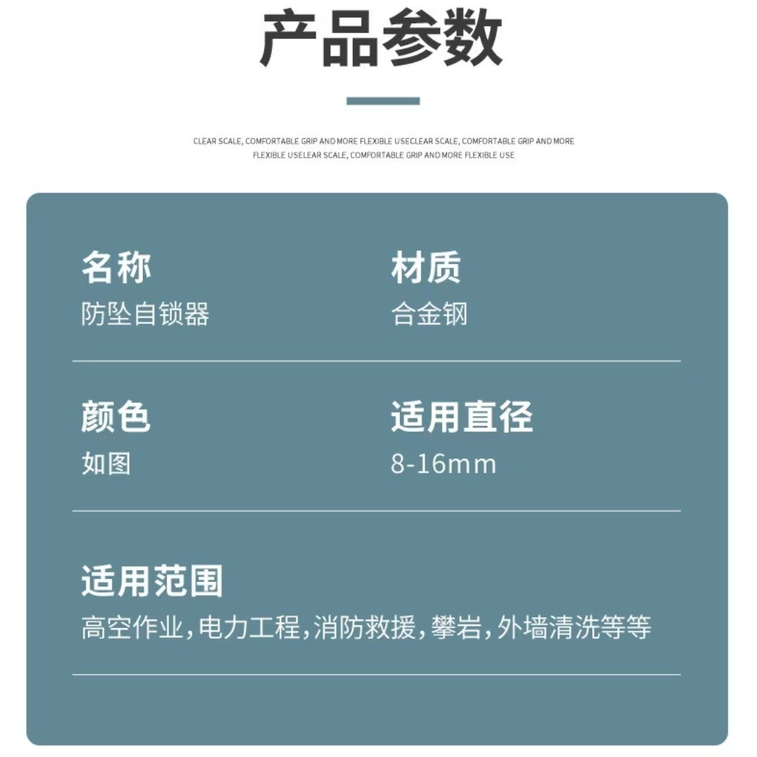 卸売り16mm閉鎖式ロープ掴み器高所安全ロープ閉鎖式自動ロック器ロープ落下防止落下防止器落下防止