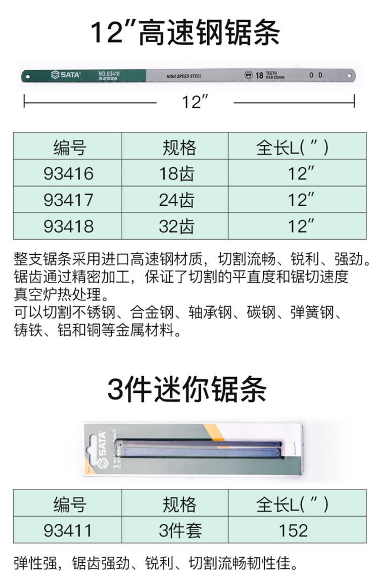 型番 93406 /12 "バイメタルフレキシブル鋸18歯,93407 /12 "バイメタルフレキシブル鋸24歯,93408 /12 "バイメタルフレキシブル鋸32歯,93416 /12 "高速度鋼鋸18歯,93417 /12 "高速度鋼鋸24歯,93418 /12 "高速度鋼鋸バー32歯,93411 /3点セットのミニソーバー6」