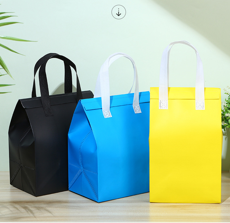 不織布保温バッグ、カスタム防水ファーストフードテイクアウト用ハンドバッグ、カスタムカラーのコーティングされた不織布バッグ