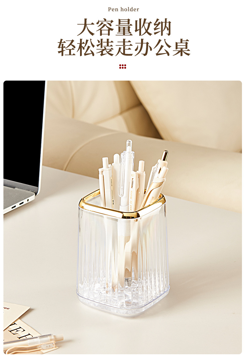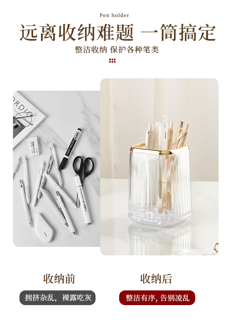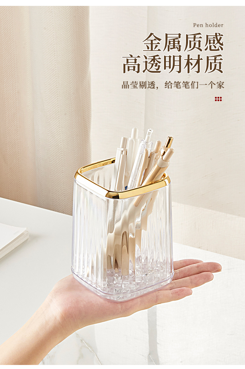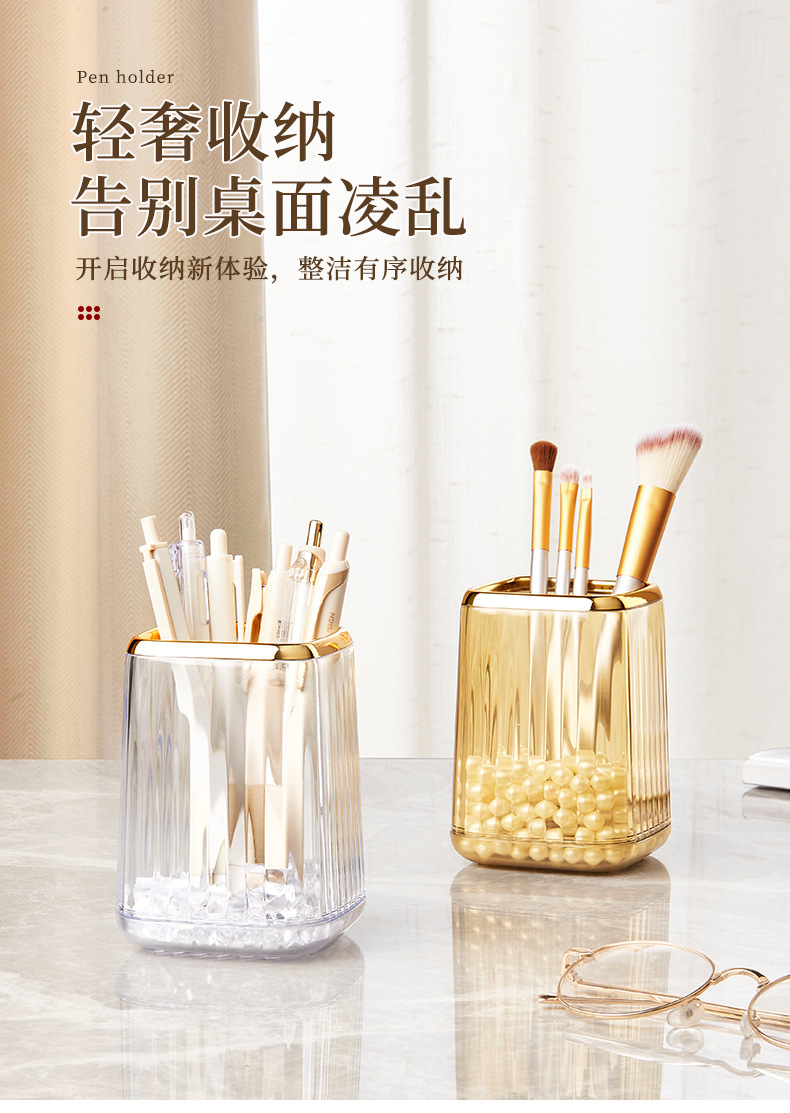 氷河パターンペンホルダーデスクトップ回転収納ボックスライト高級ハイエンドプラスチック収納ラック化粧ブラシ収納統合キャビネット
