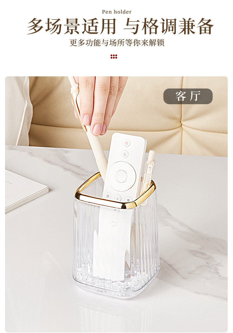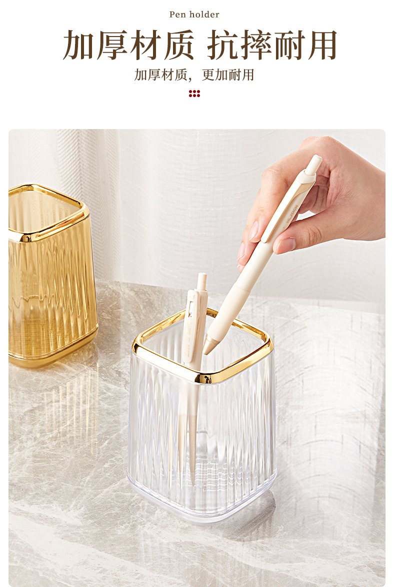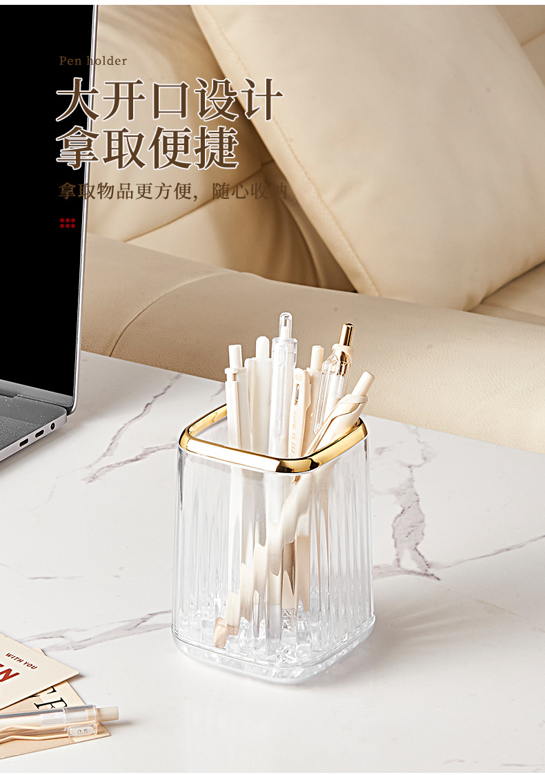 ペン立て 透明プラスチック製 オフィスデスク 文房具整理収納ボックス 口紅 化粧ブラシ入れ デスクトップ収納ボックス