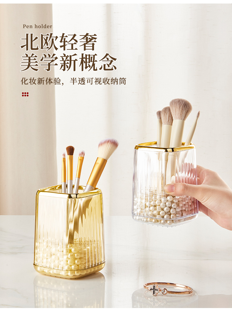 インスタ风回転メイクブラシ収纳筒ブラシバケットホルダーデスクトップ収纳ケースドレッサー化粧品ペンホルダー
