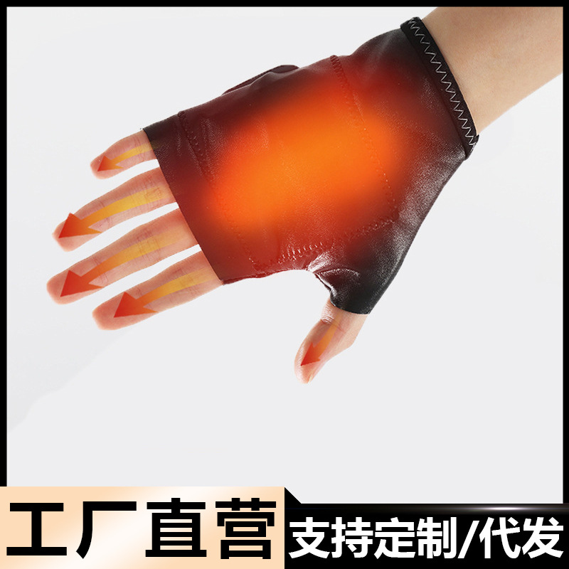 冬の知能発熱手袋は電気自動車の防寒手袋usb充電露半指自己発熱暖手宝に乗る