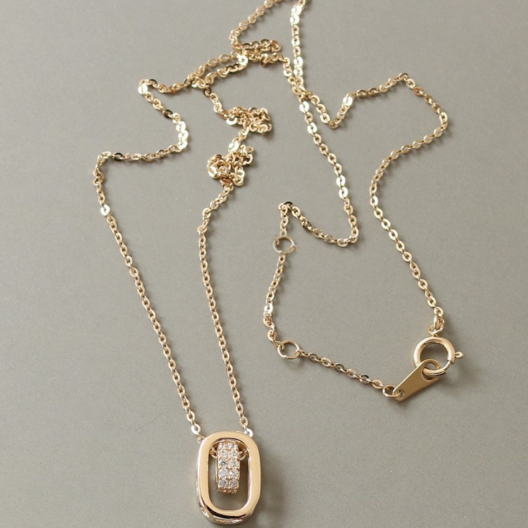 時来運転 ~ S925銀メッキ14k金ネックレス女性抜き楕円ジルコニウム小輪鎖骨鎖円環ネックレス