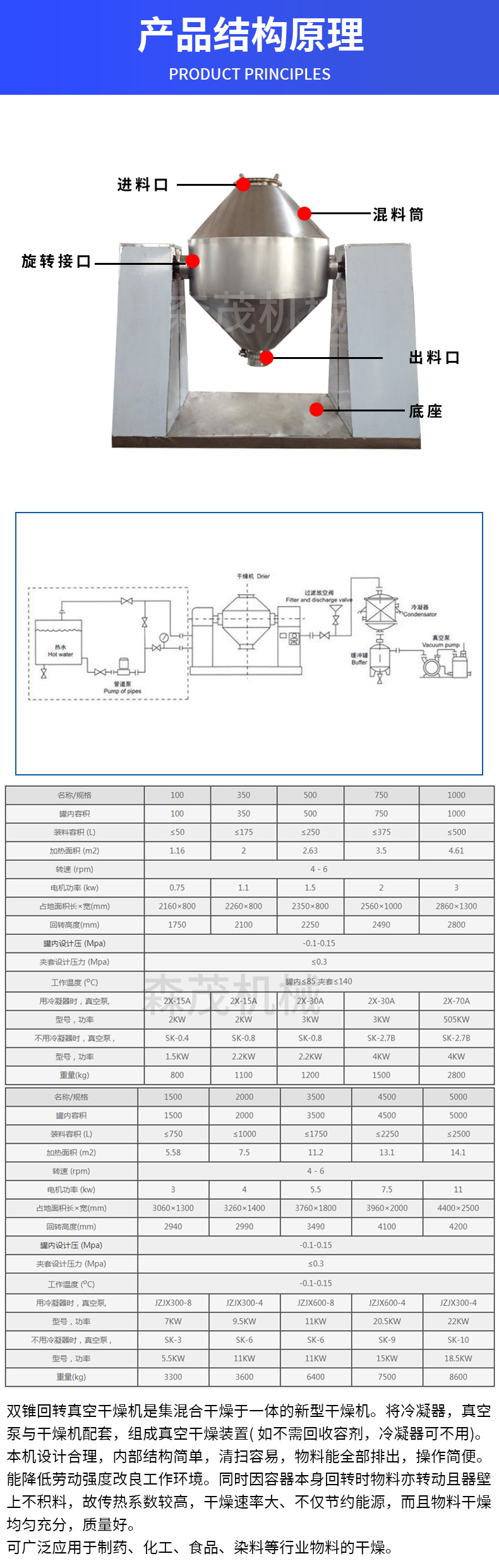 母粒脱水結晶二重錐回転真空乾燥機トウモロコシ澱粉回転真空乾燥設備森茂