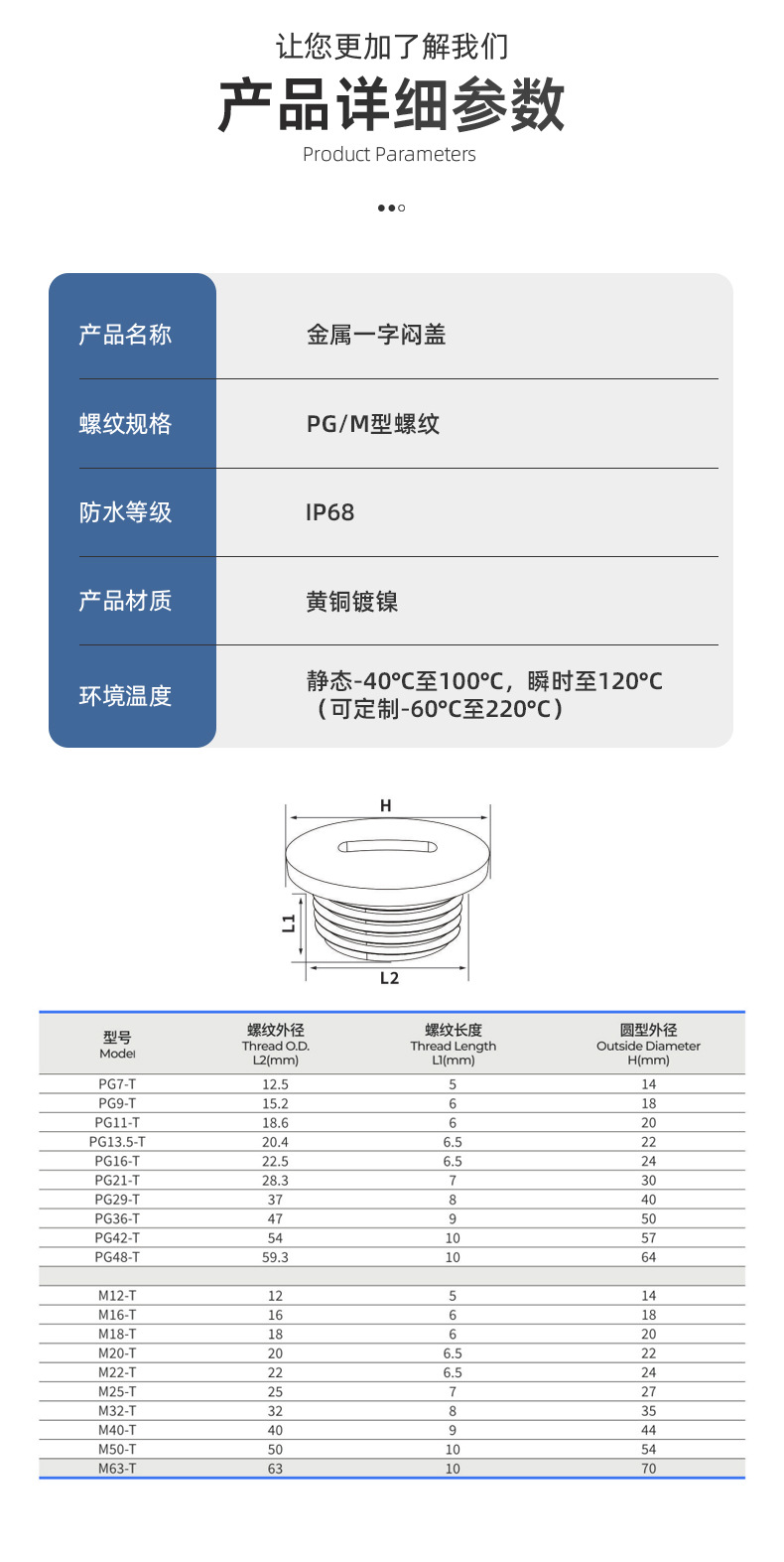 規格型番 M 8*1,M10 * 1.5,M 12*1.5,M 16*1.5,M 18*1.5,M20*1.5,M22 * 1.5,M25*1.5,M 30*1.5,M 32*1.5,M 40*1.5,M 50*1.5,M 63*1.5,Pg 7,Pg 9,Pg 11,Pg 13.,Pg 16,Pg 21,PG29,PG36,Pg 48,Pg 63