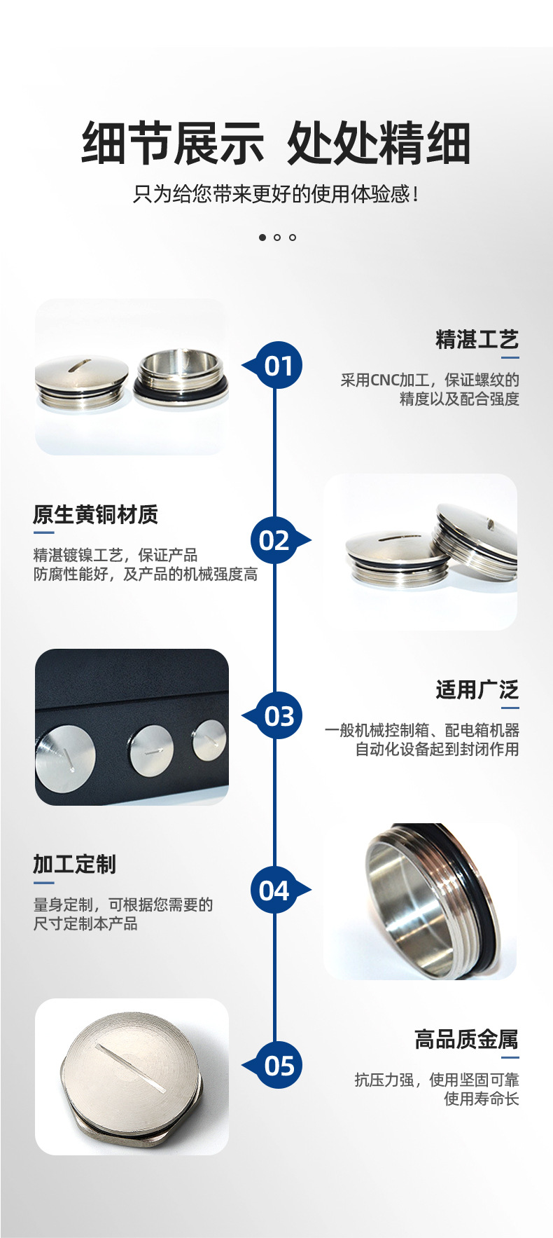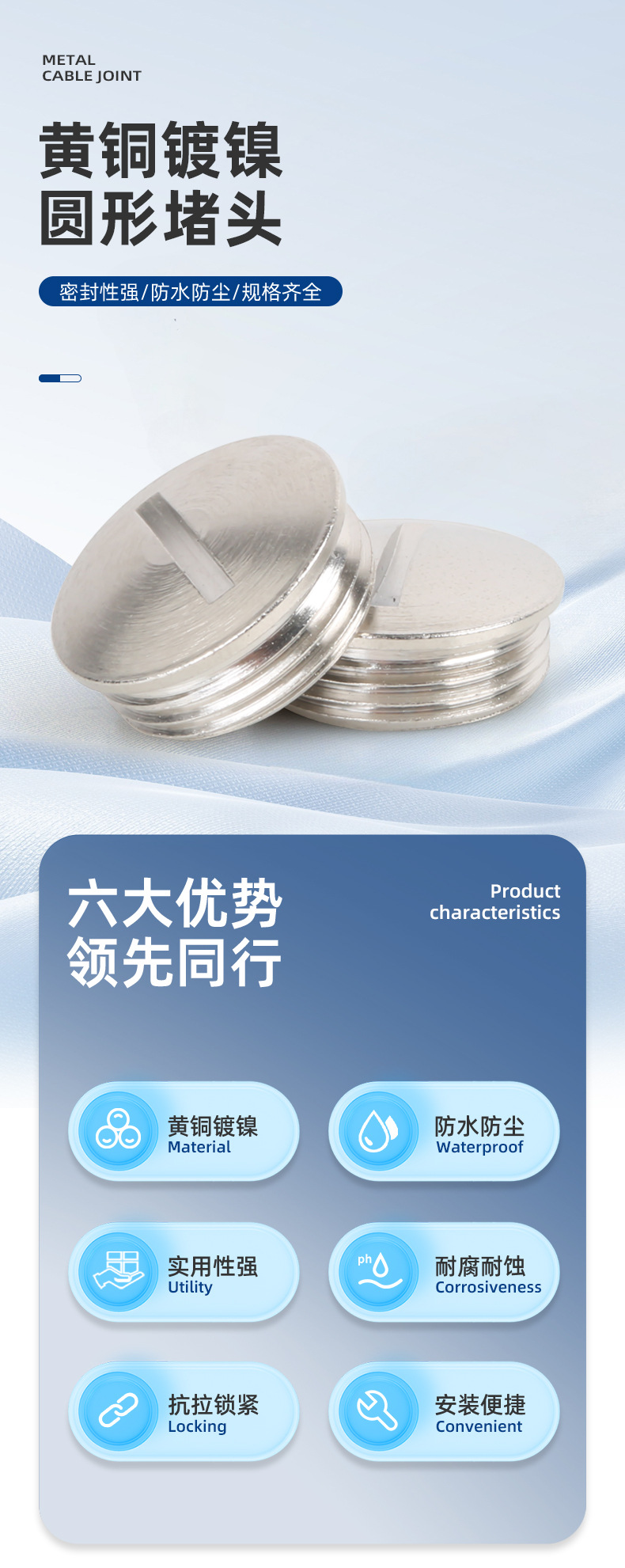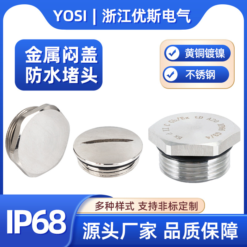 プラグ金属銅メッキニッケル丸蓋防水防塵一字プラグキャップシルクプラグキャップ封孔プラグM/ PG固定