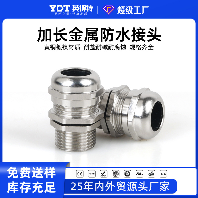 英得特m型延長ip68防水継手金属ケーブル葛蘭頭黄銅ニッケルメッキ船用m16充填書