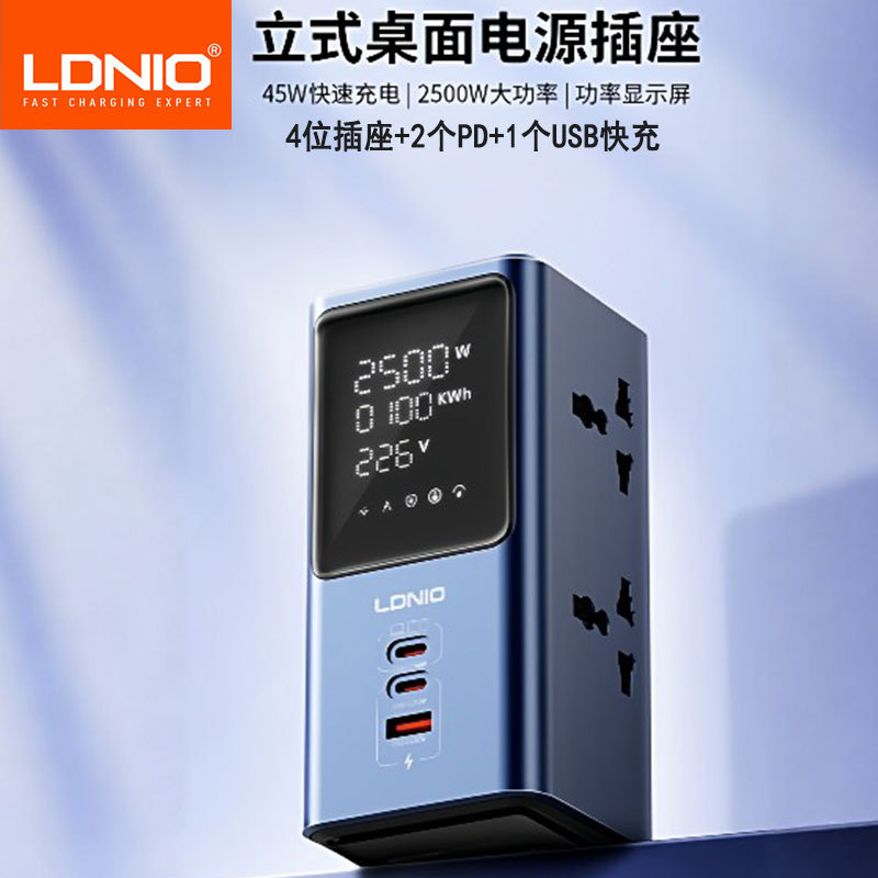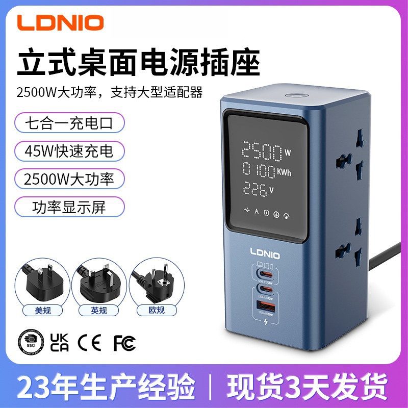 LDNIO立式排插7合1带数显多功能接线板多口PD塔式英标拖板