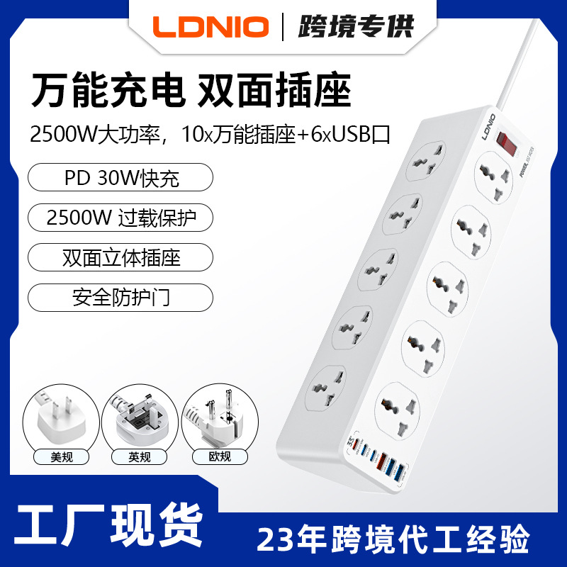 Ldnio力徳諾sc10610多機能ケーブル板10位コンセント穴usb充電速type-c携帯電話口