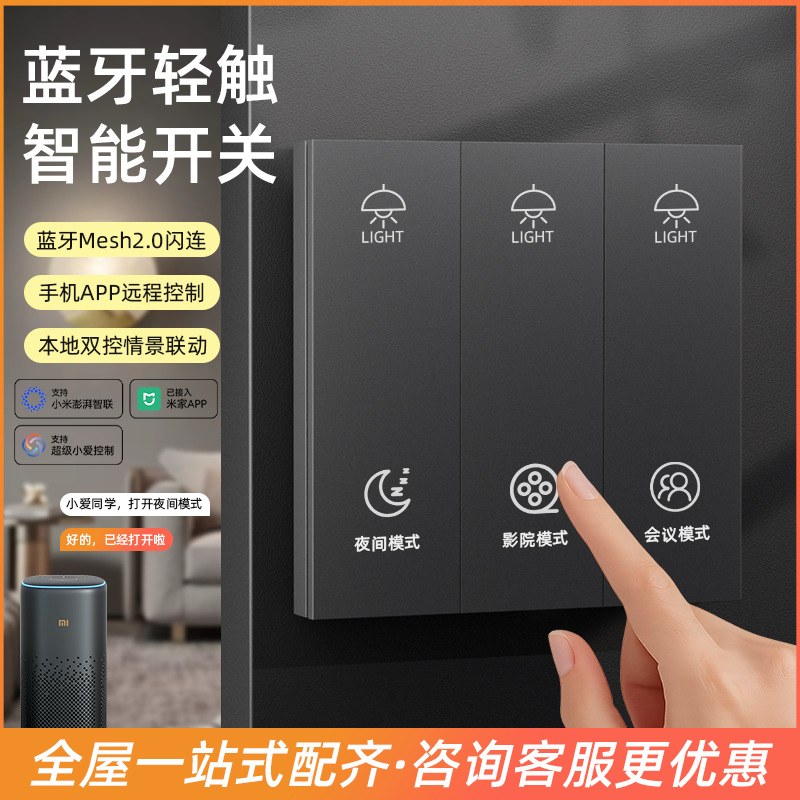 蓝牙mesh2.0智能开关已接入米家APP小爱语音控制金色民宿酒店开关