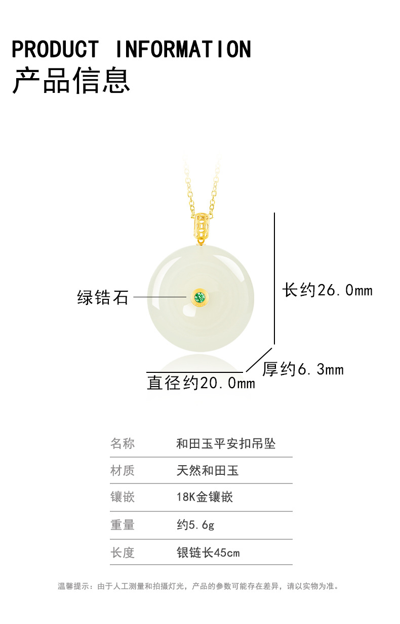 天然の古い材料と田玉白玉の無事のブランドのペンダントの規格品の18kの金は玉のペンダントのネックレスの男性の女性の金を入れます。