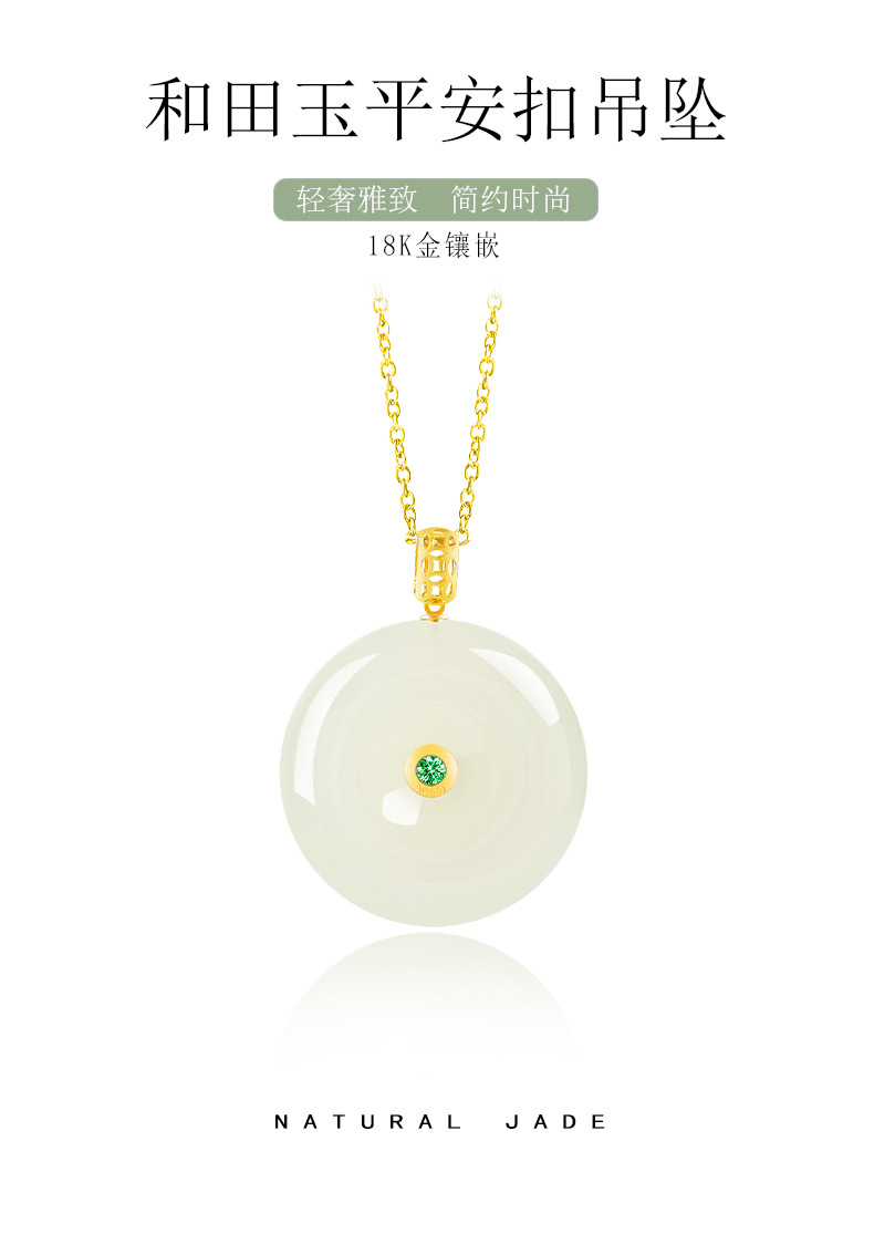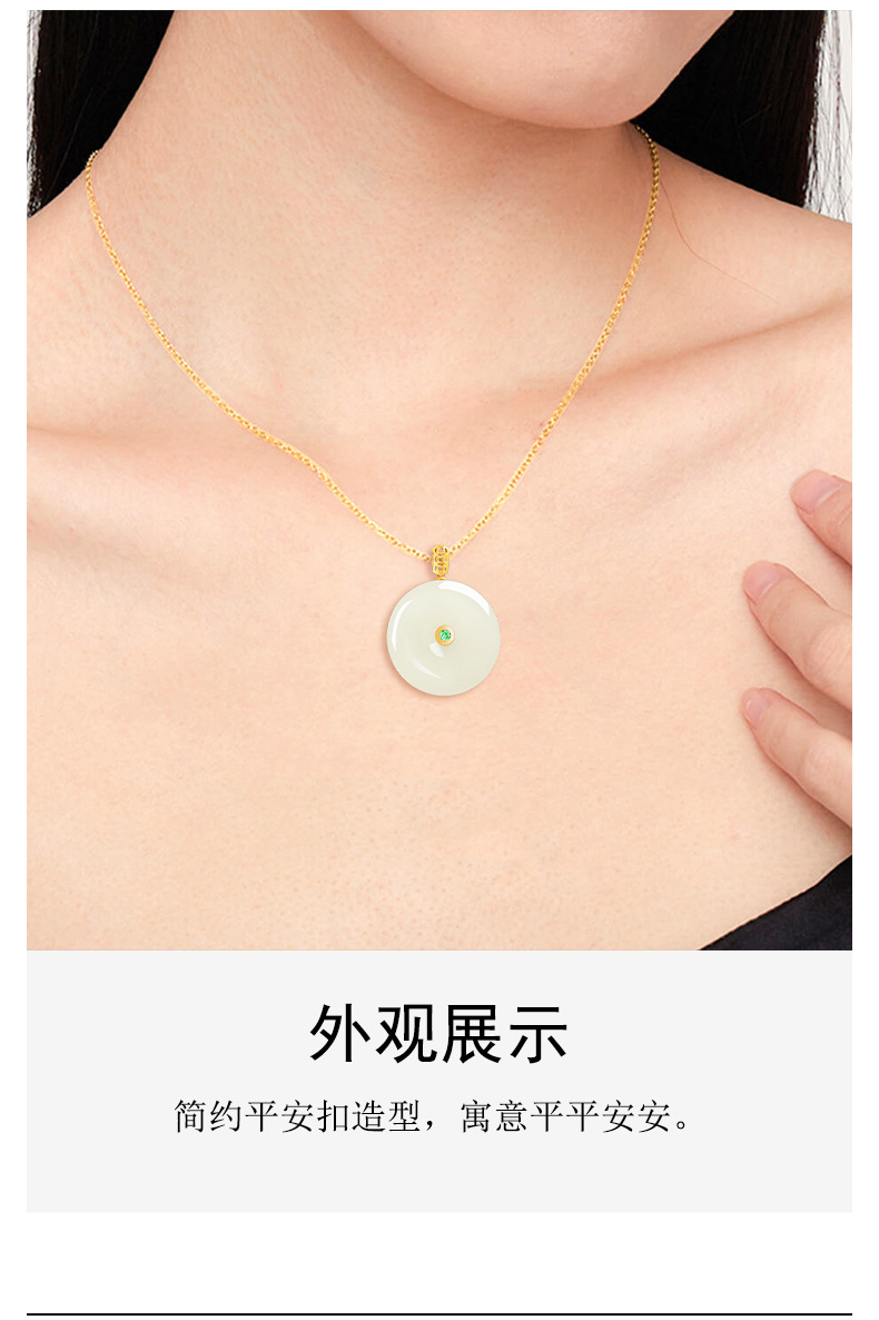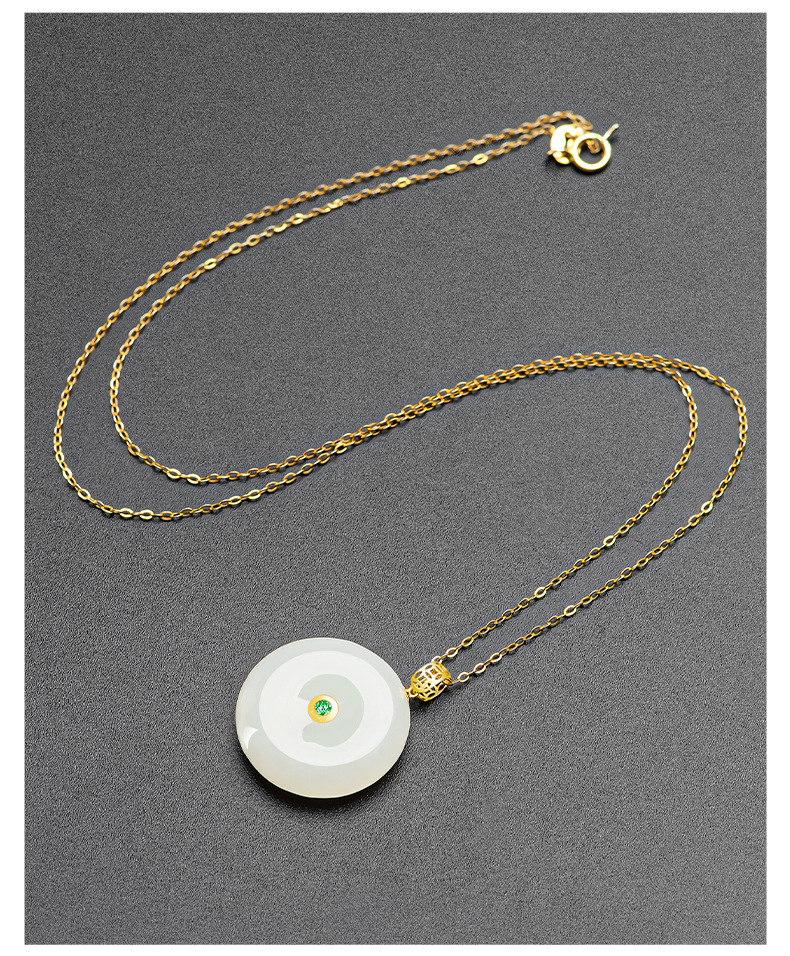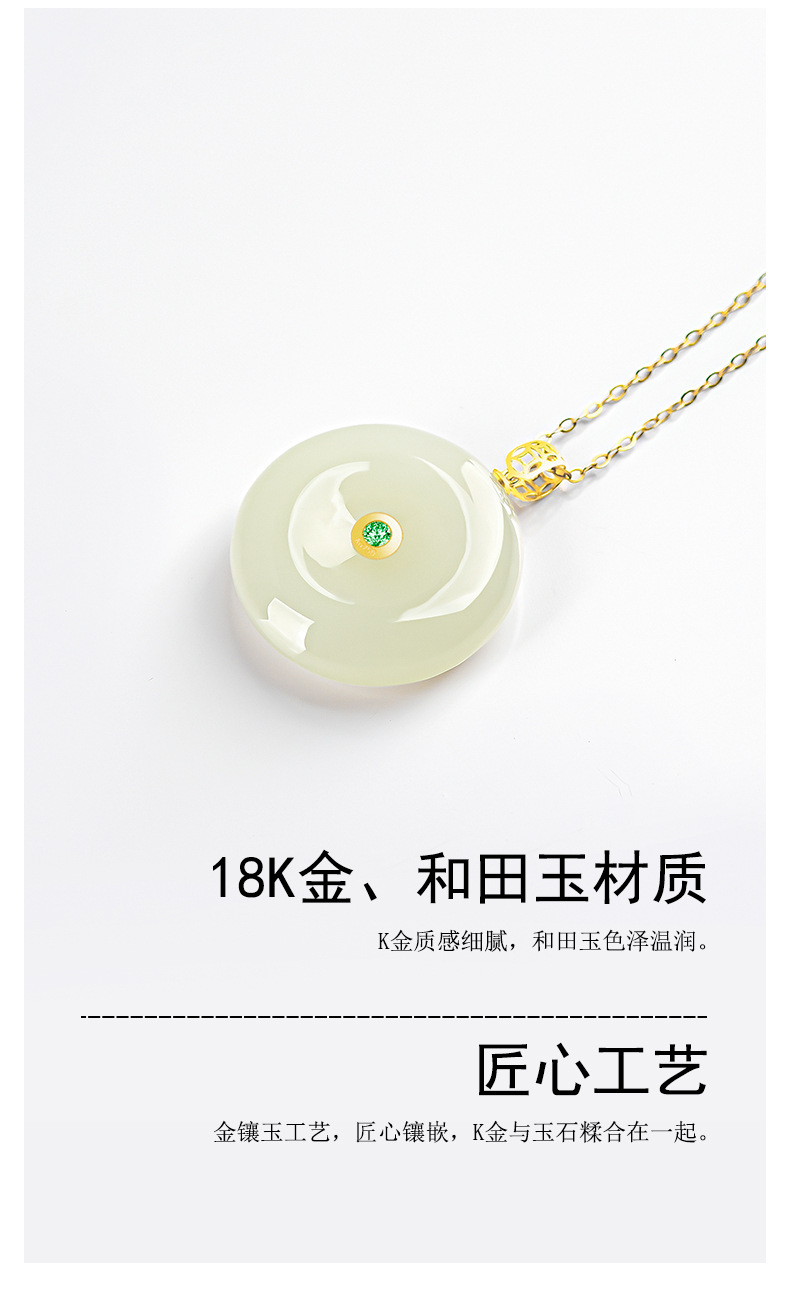 老料和田玉白玉如意ペンダント本物18K金天然翡翠ペンダントネックレス男女兼用シンプルでおしゃれ