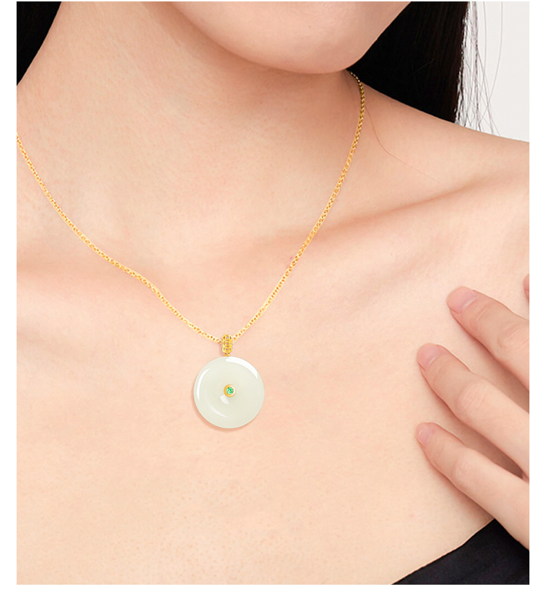 天然古材ホータン翡翠白翡翠無事ペンダント本物の S925 シルバー象嵌翡翠ペンダントネックレス女性の卸売