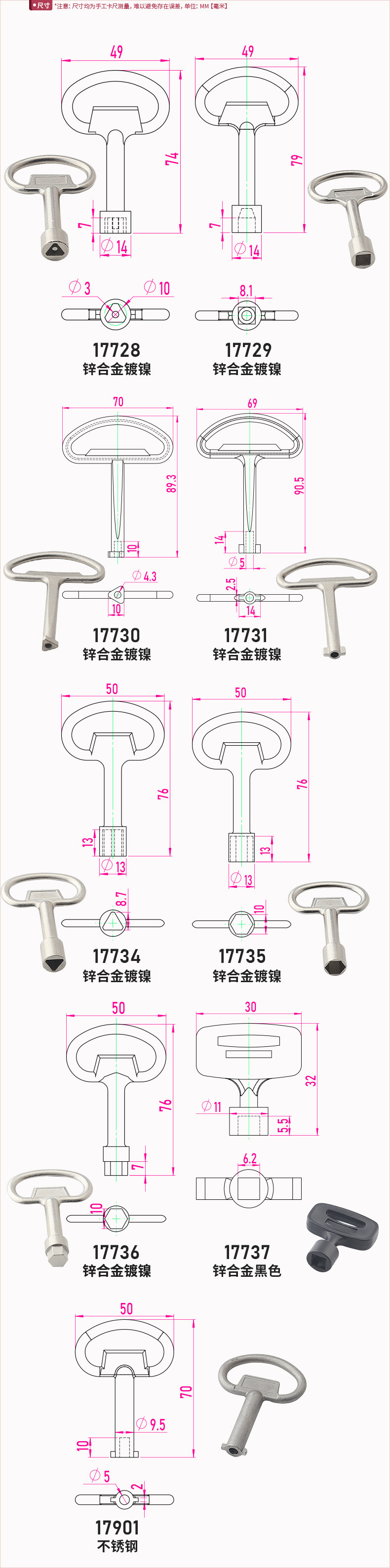 多機能キー水道メーター電気制御キャビネット火門高速鉄道高速鉄道蛇口四角三角十字エレベーター部品