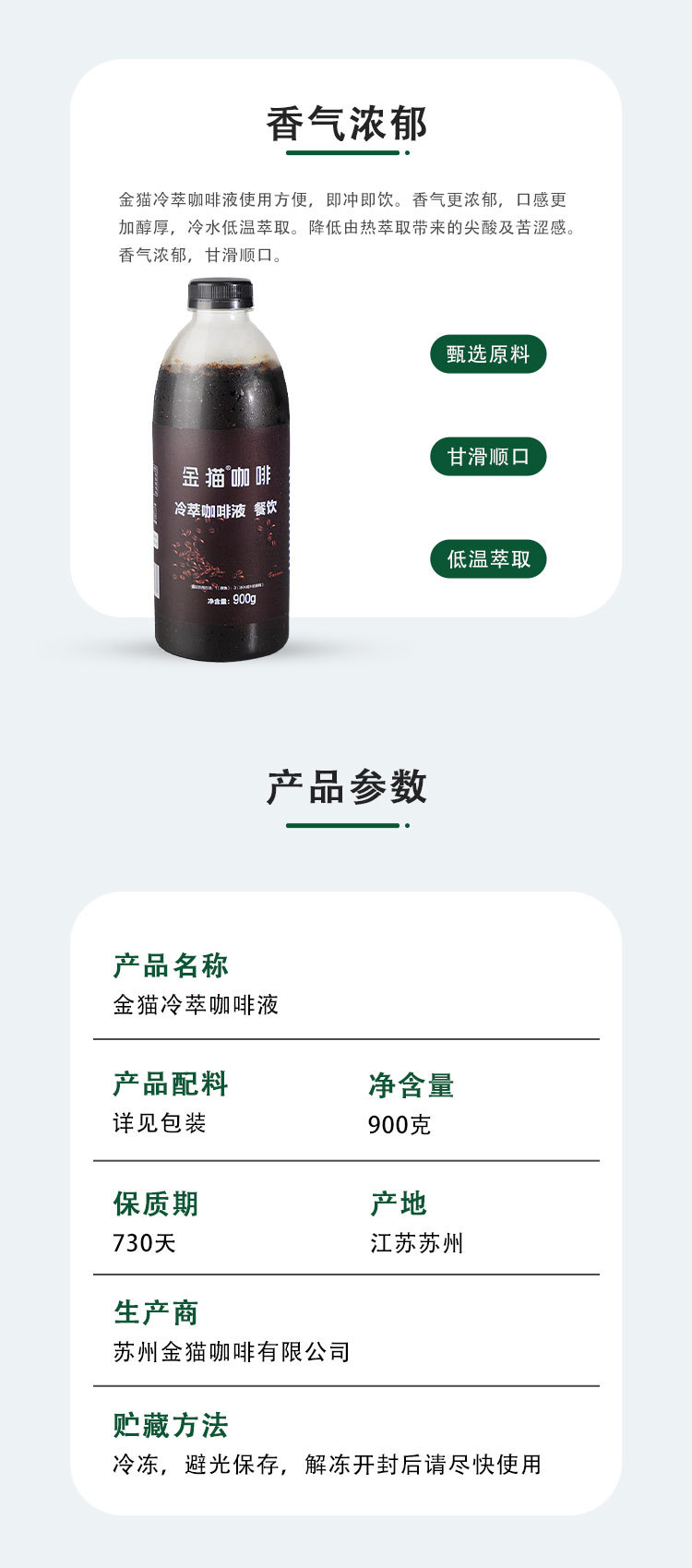 金猫冷抽出コーヒー液濃縮インスタントアメリカは砂糖なしブラックコーヒー氷滴コーヒー液商用900gを飲む