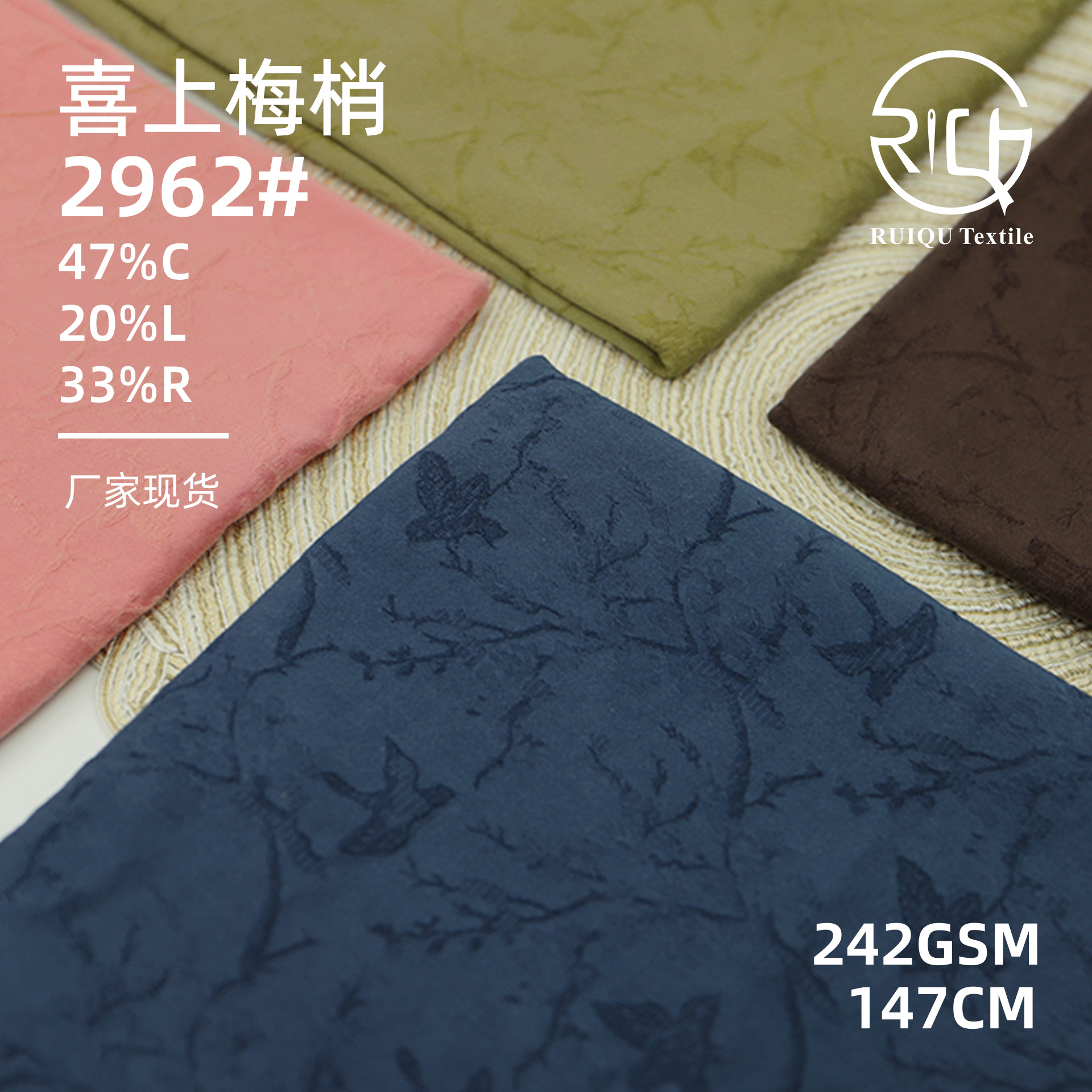 亚麻棉喜鹊梅花暗纹肌理面料文艺气质夏季汉服女装连衣裙服装面料