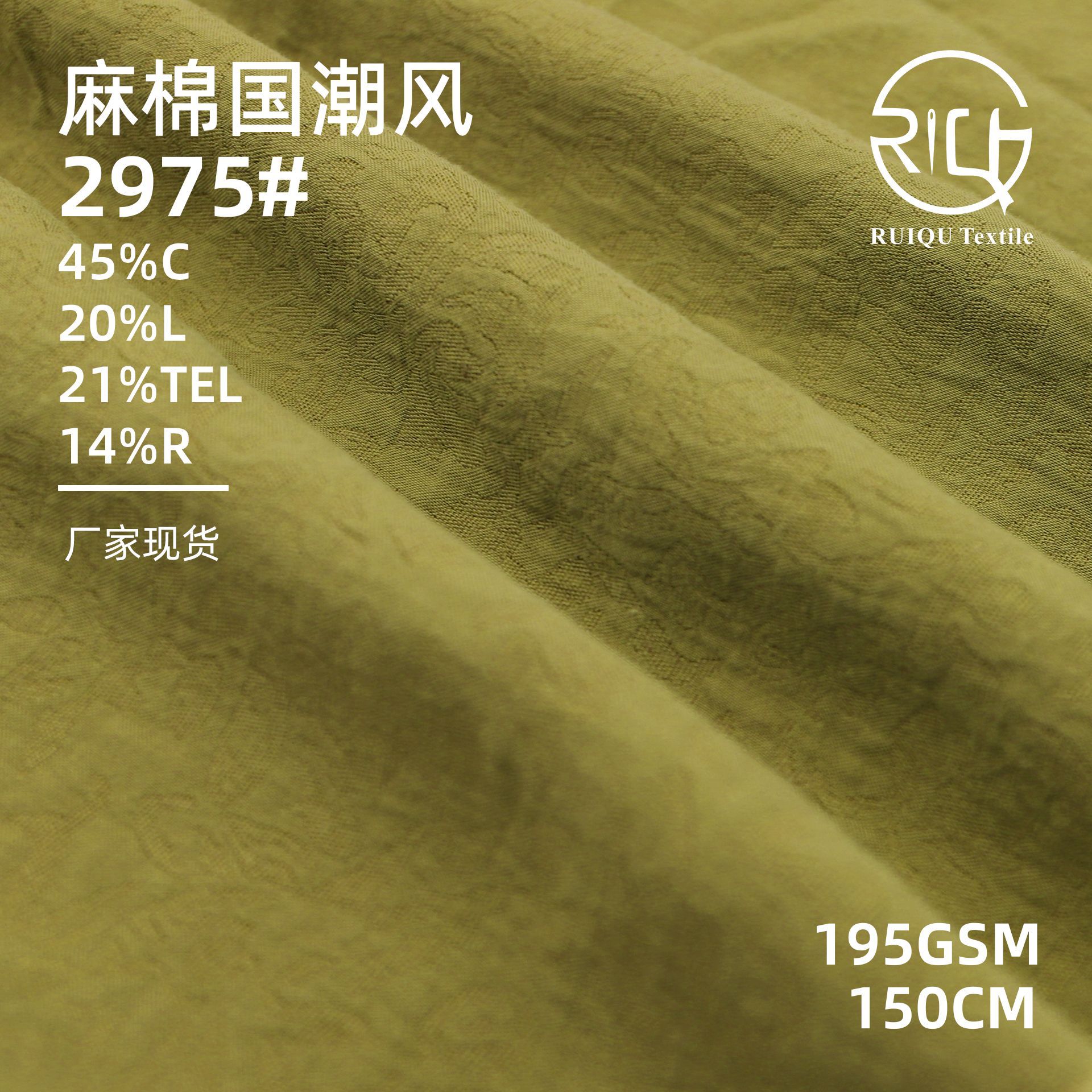双层麻棉暗纹肌理国潮风提花布透气中式汉服连衣裙阔腿裤服装面料