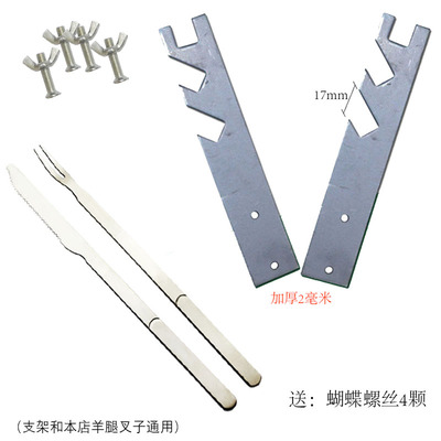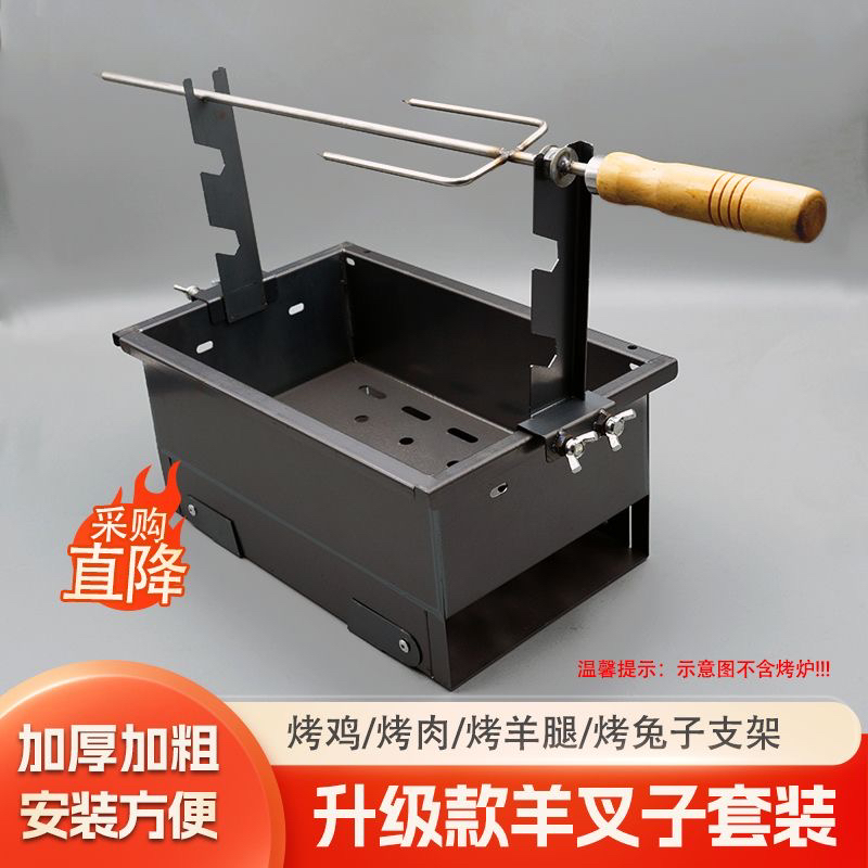 不锈钢羊腿叉三叉烤鸡烧烤羊排叉子旋转烤兔家用架子烤羊腿叉子
