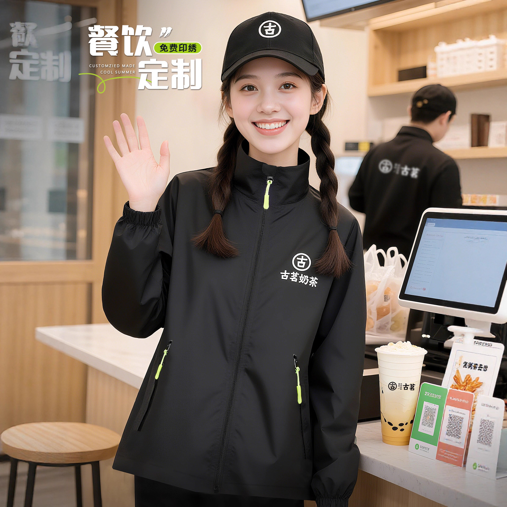 防水冲锋衣工作服定制餐饮奶茶咖啡店工装春秋服务员外套印logo晴