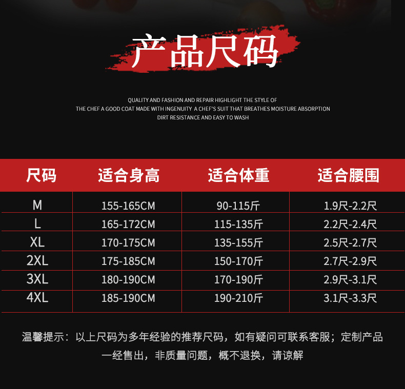 高級料理人作業服男性冬服長袖ホテルレストランレストランレストランキッチン焙煎セット制定