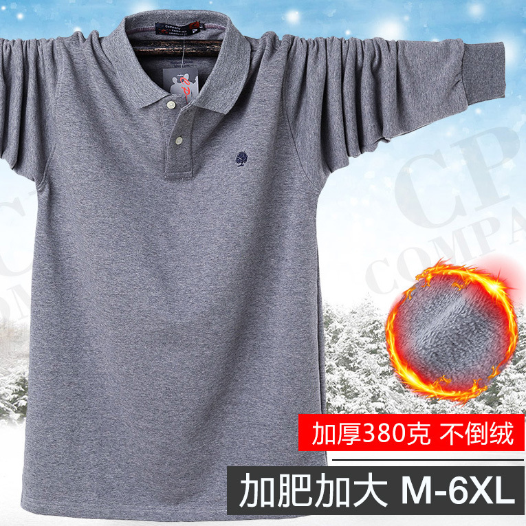 太って男性poloシャツを大きくした高齢者は、長袖の襟tシャツ保温綿の太った人8338を厚くした
